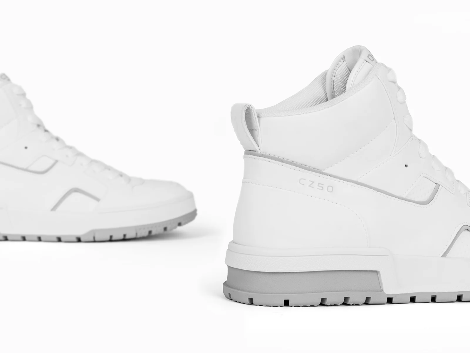 Inspired by retro basketball styles, the CZ50 high-top sneaker delivers a sleek, modern aesthetic with subtle grey accents that add depth to its clean, all-white design. Featuring a padded collar and secure lace-up system, it offers a versatile fit that pairs perfectly with casual jeans or sweatpants. Designed for style and performance, this sneaker discreetly enhances height without sacrificing comfort.